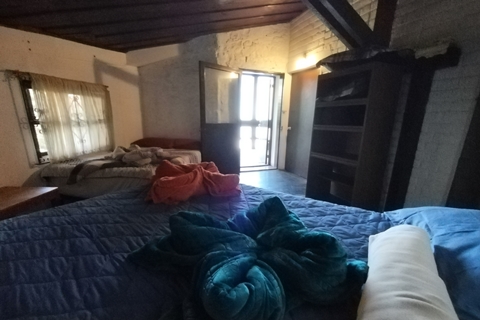 Nuestras habitaciones dobles se encuentran dentro de la casa de piedra con estilo aleman por el momento funciona nuestro restaurante, todas tienen baño privado 2 habitaciones cuentan con ducha caliente, y una cuenta con terraza privada con vista al jardin y al oeste del pais, nuestras cabañas estan 100% adecuadas al clima fresco. Nuestros precios incluyen desayuno tipico he impuestos. (Precios de temporada alta)